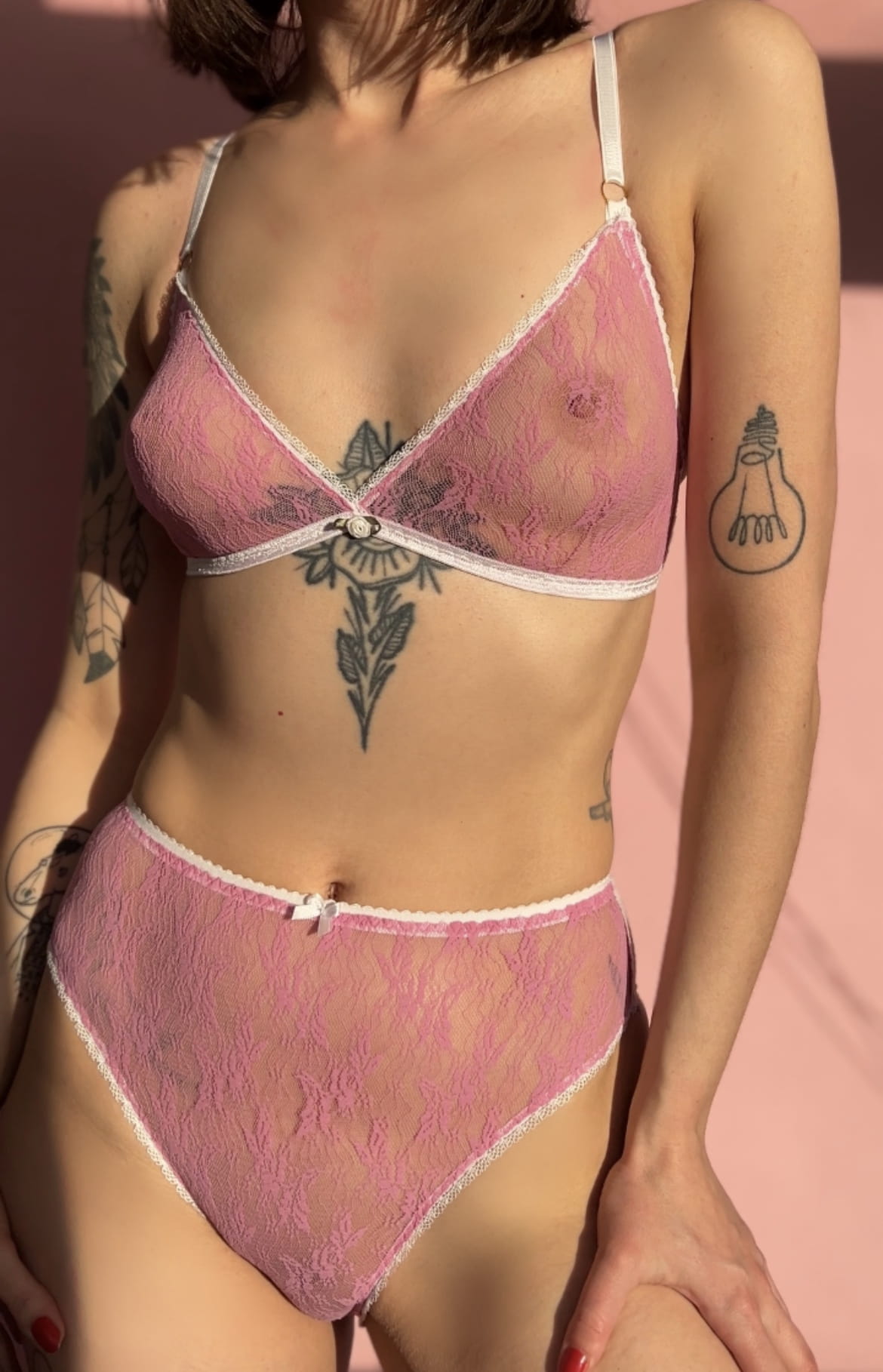 Bralet wykonany z miękkiej koronki, wiązany na plecach.