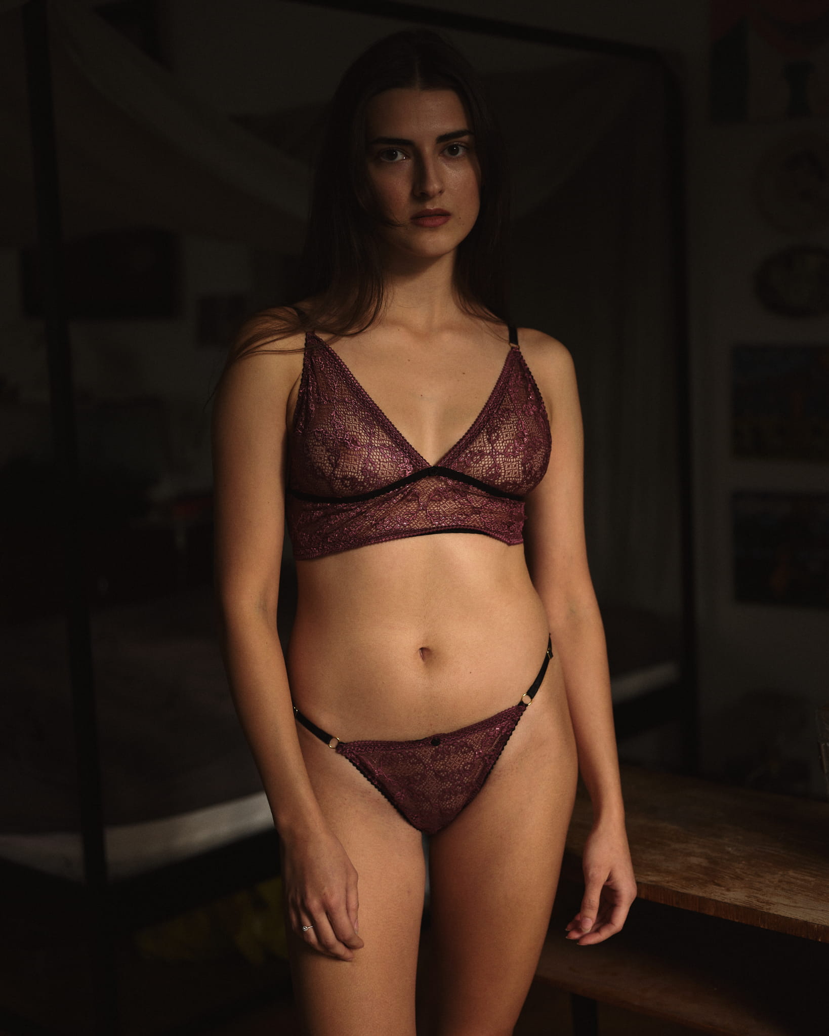 Majtki wykonane z miękkiej, elastycznej koronki z wycięciem w kształcie serca.