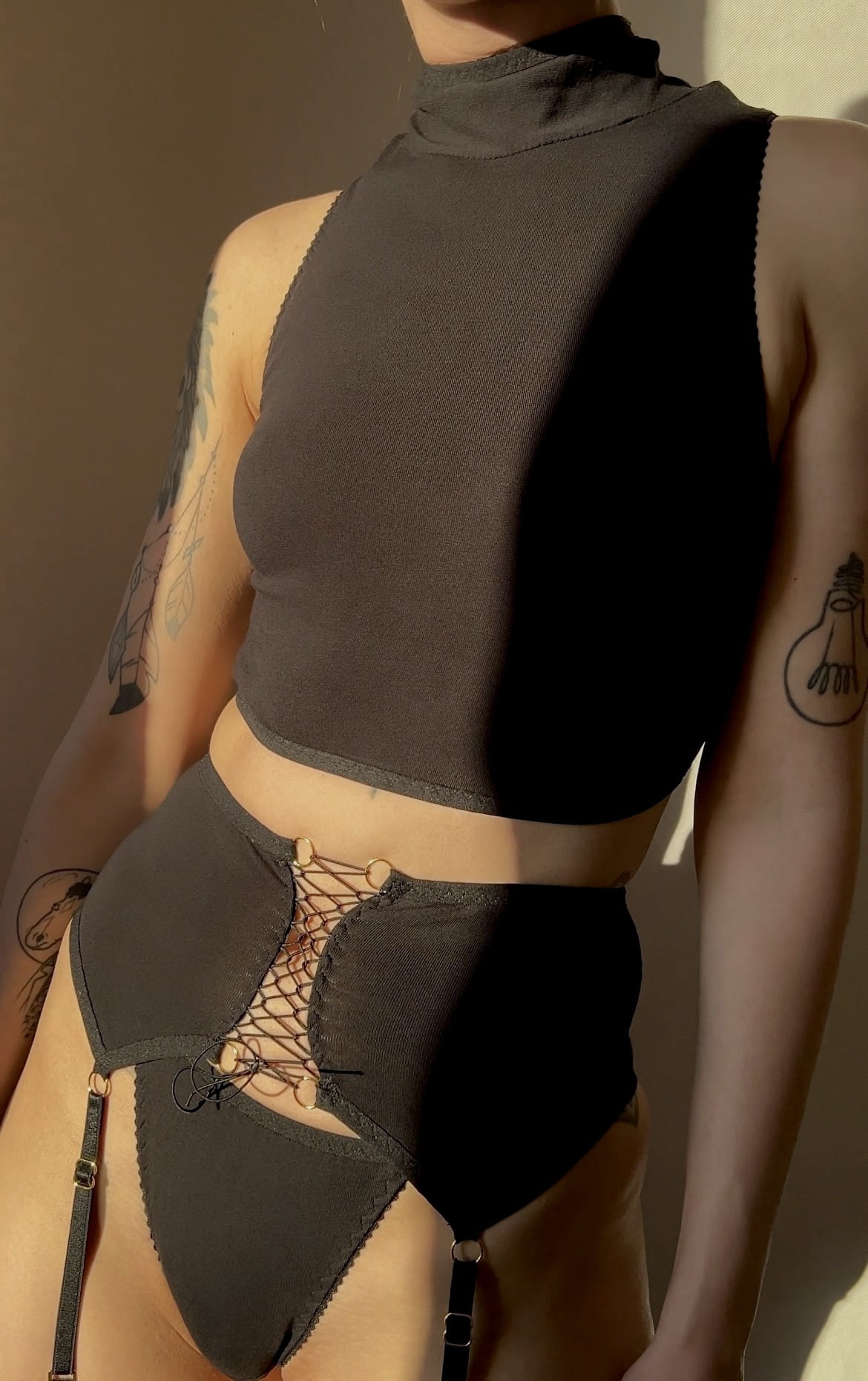 Zestaw wykonany z jerseyu organicznego ze szczęśliwymi majtkami ze szwem na lewą stronę.