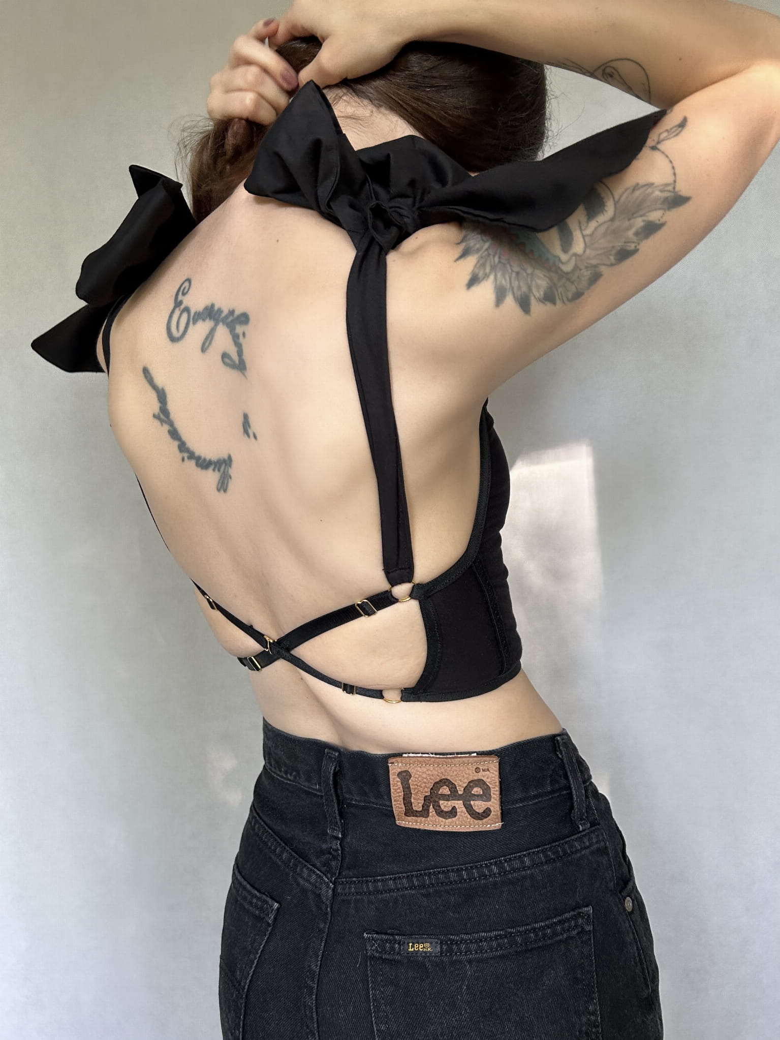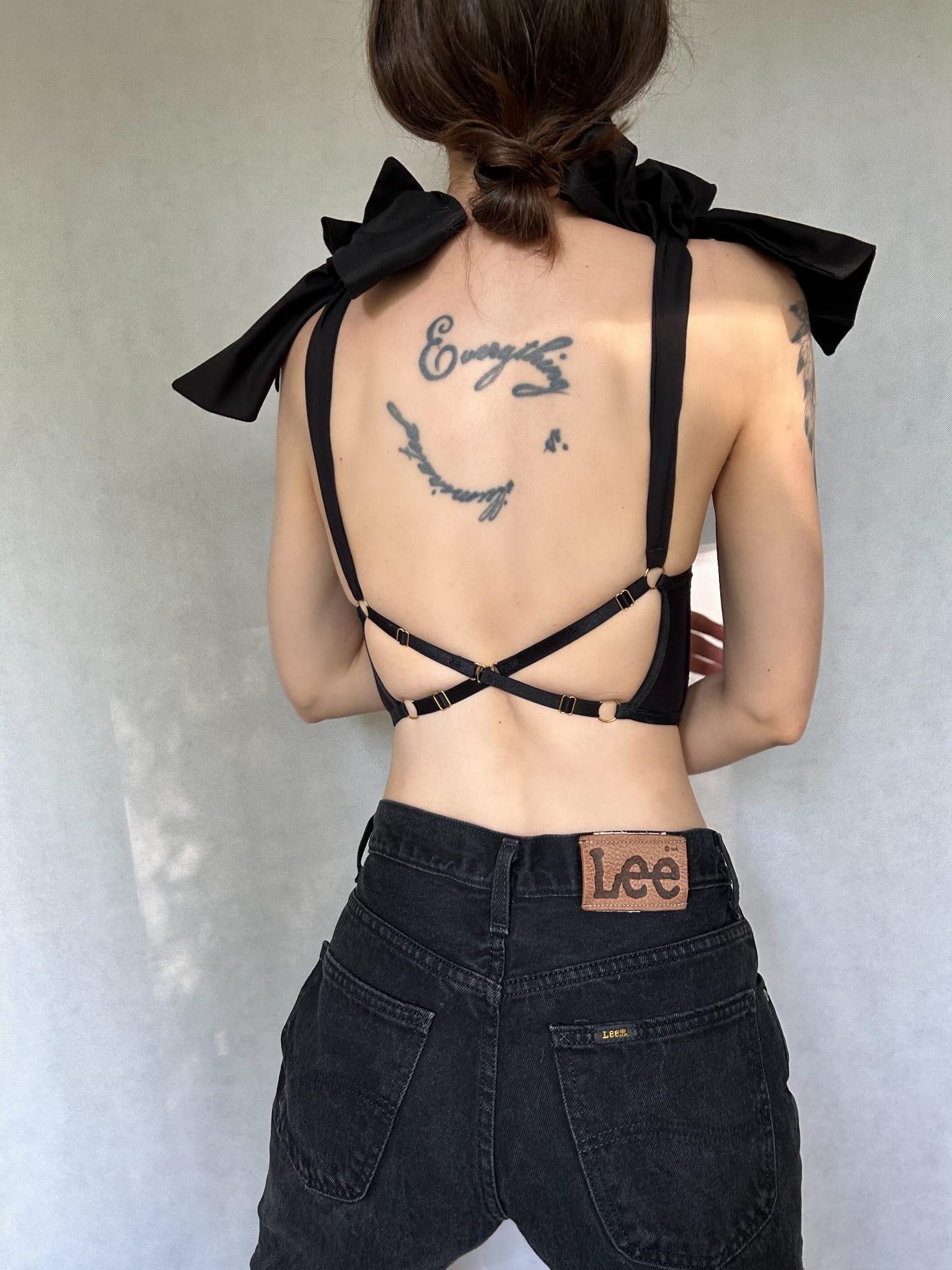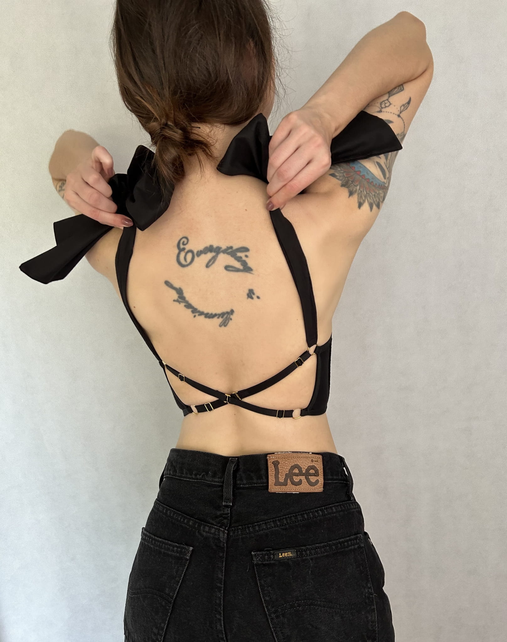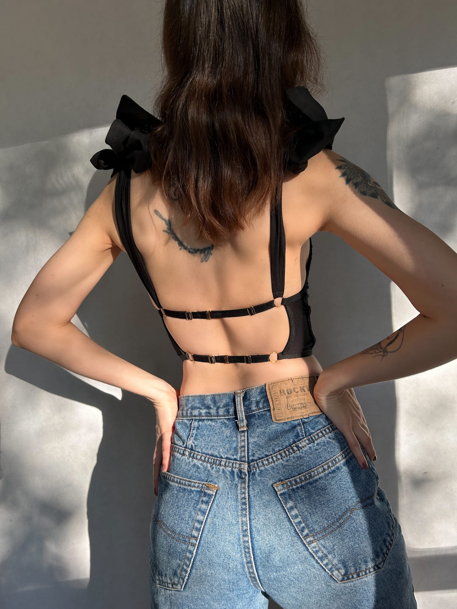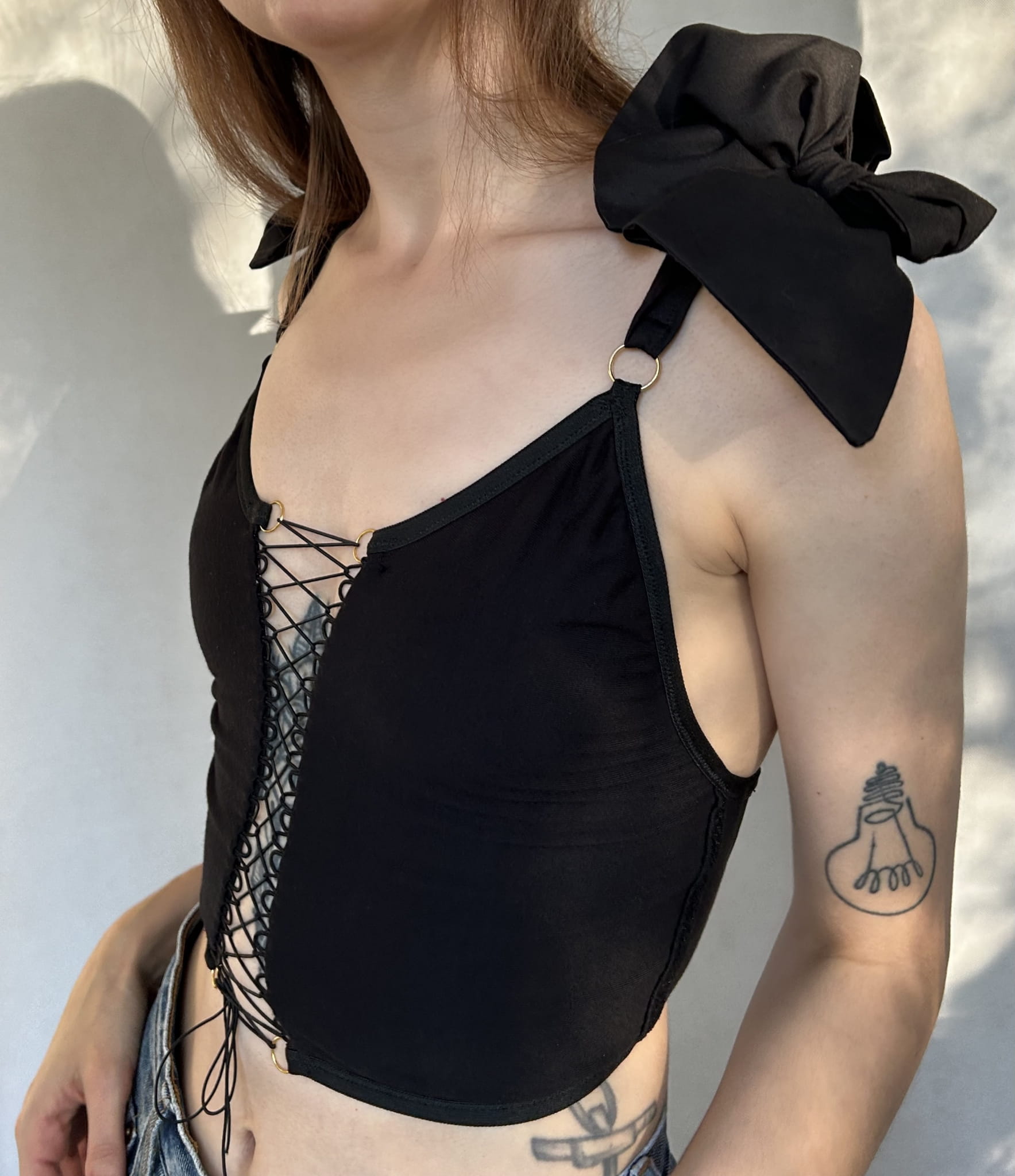 - Wiązane, ozdobne ramiączka.