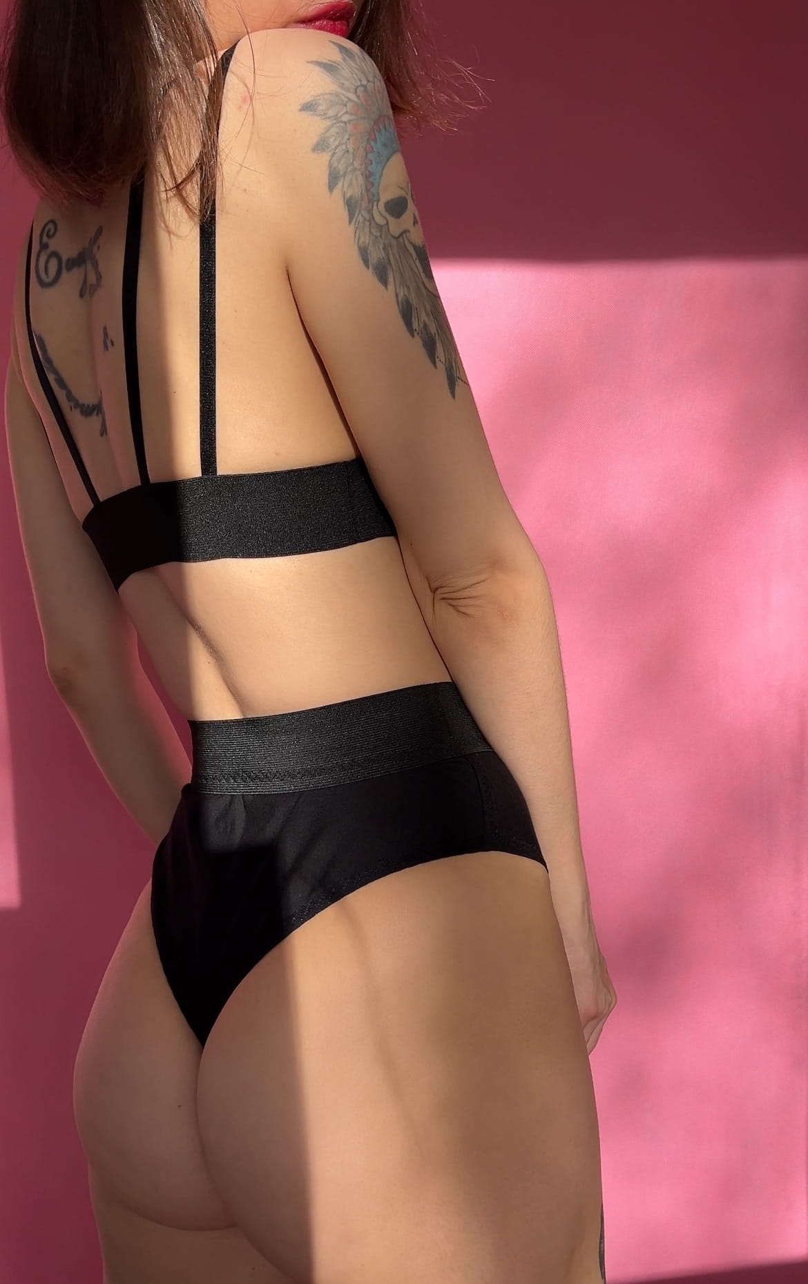 W skład zestawu wchodzą bralet i majtki.