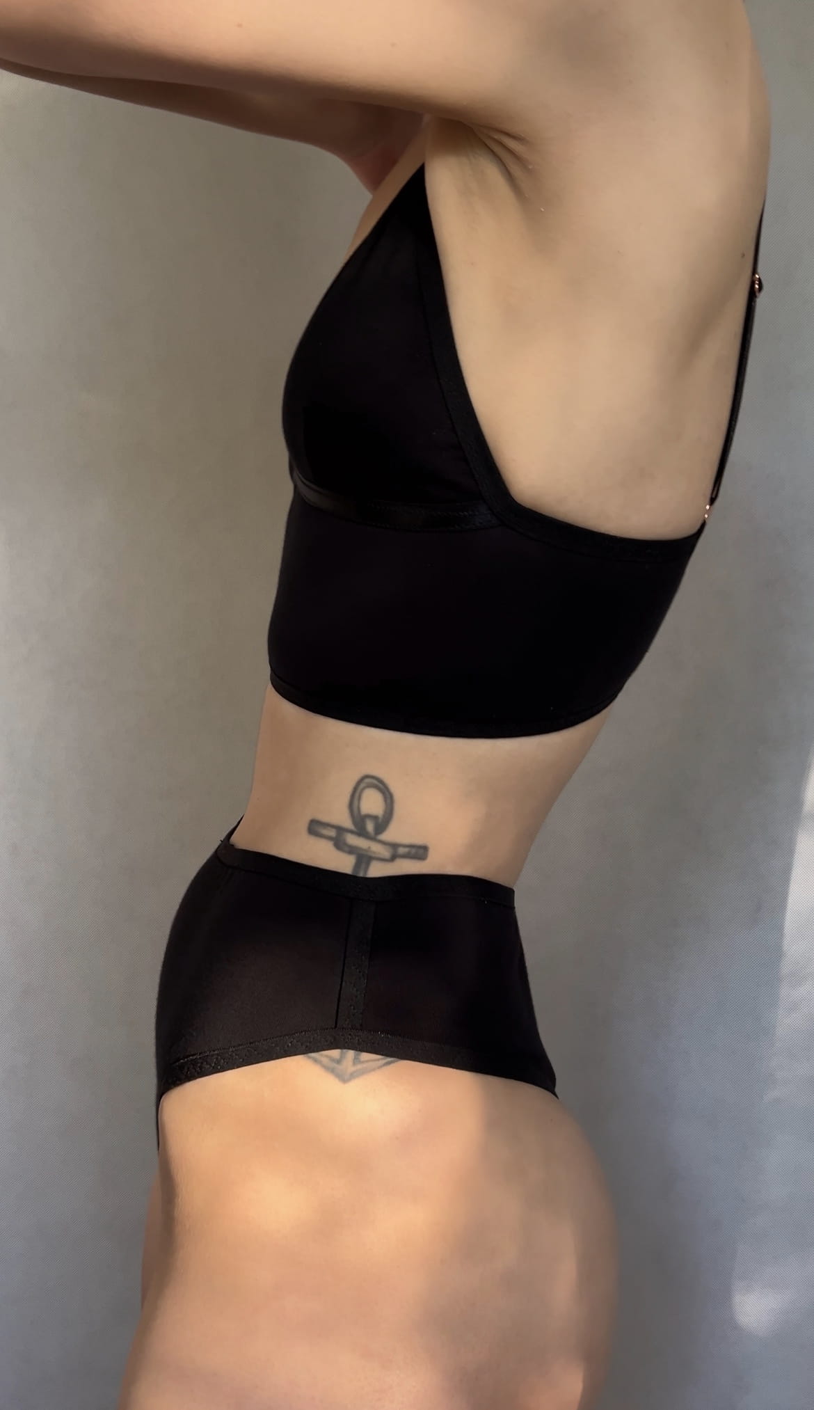 W skład zestawu wchodzą Top, Majtki i odczepiane, ozdobne paski.
