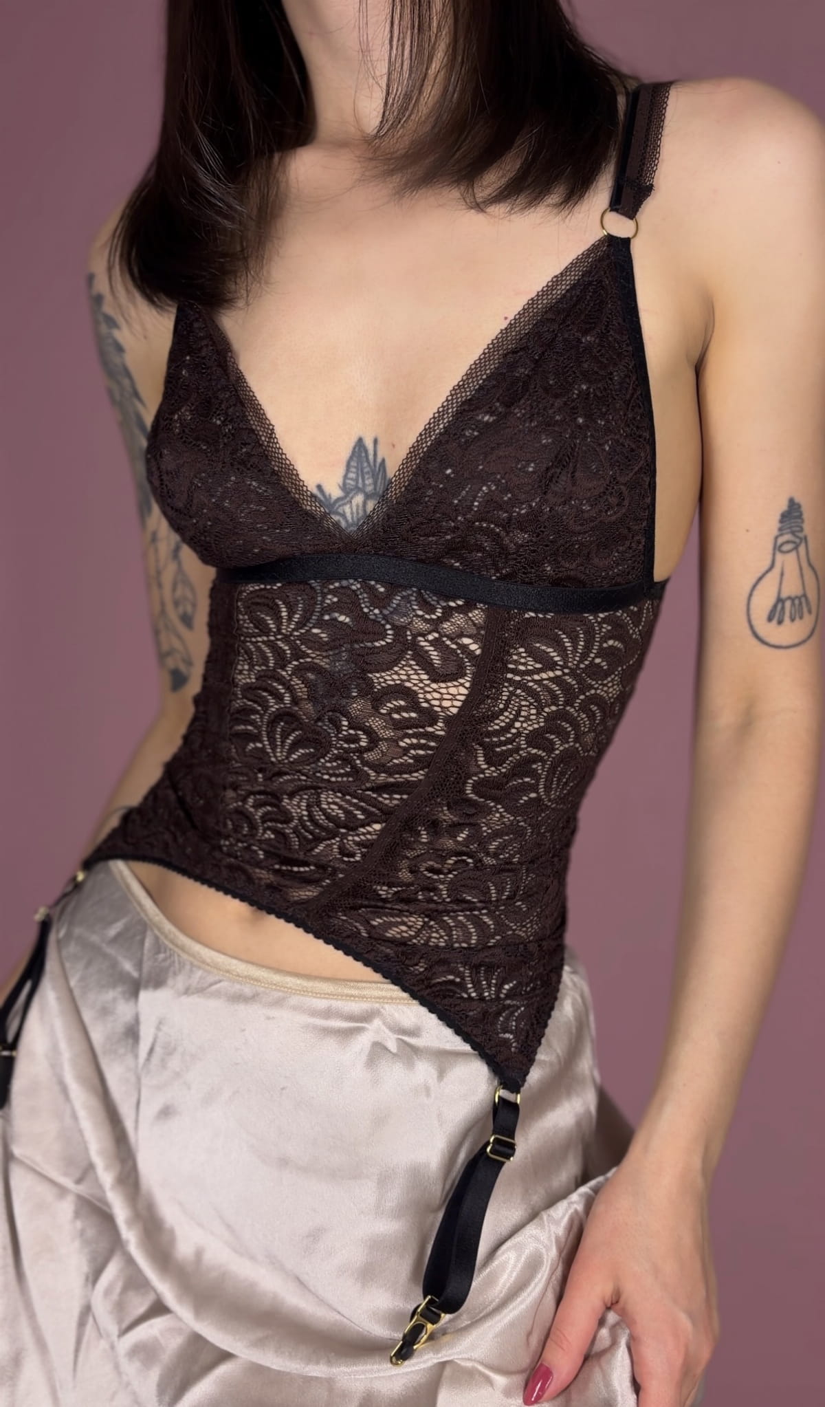 - Bustier z podwójną miseczką i ozdobnym wązaniem z tyłu, regulowany w obwodzie i z regulowanymi ramiączkami