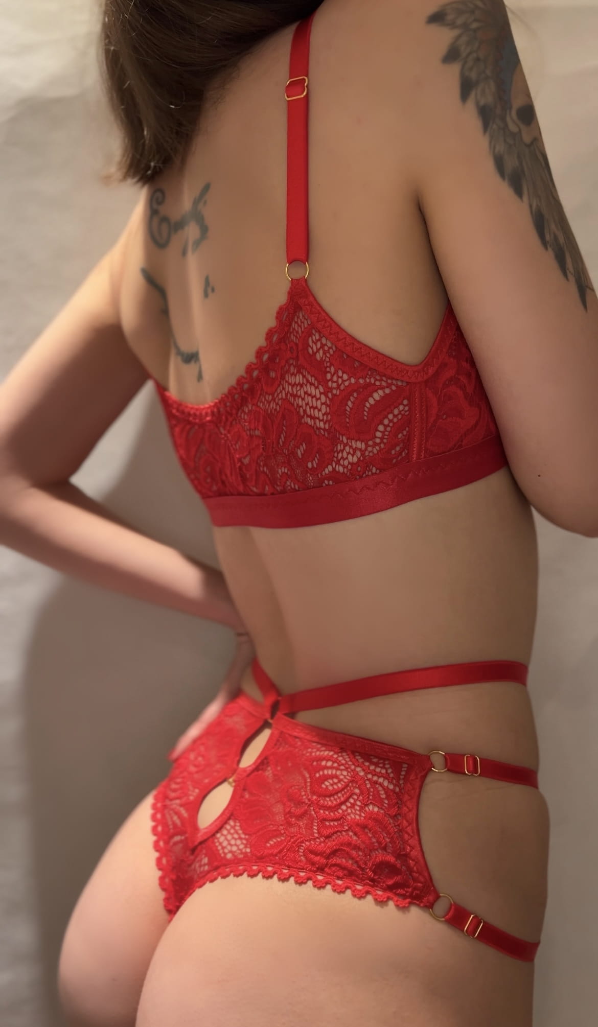Zestaw wykonany z miękkiej, elastycznej koronki.