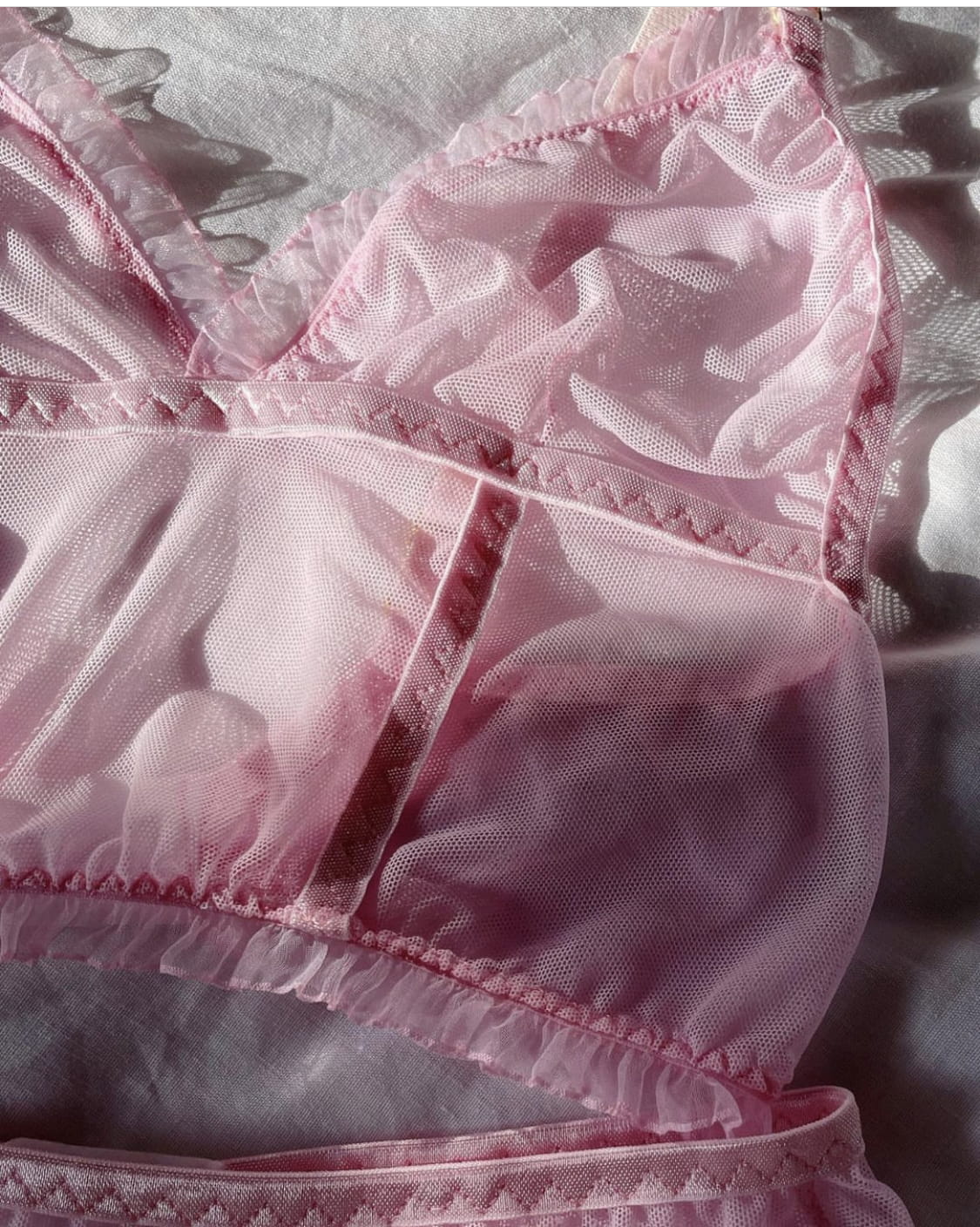 - Bralet z przedłużonym dołem wykończony gumokoronką.