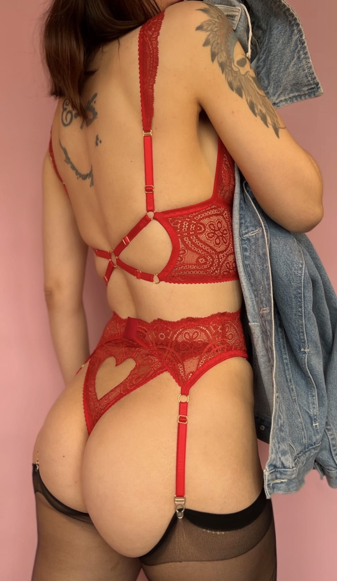 W skład zestawu wchodzą bralet, pas i majtki.