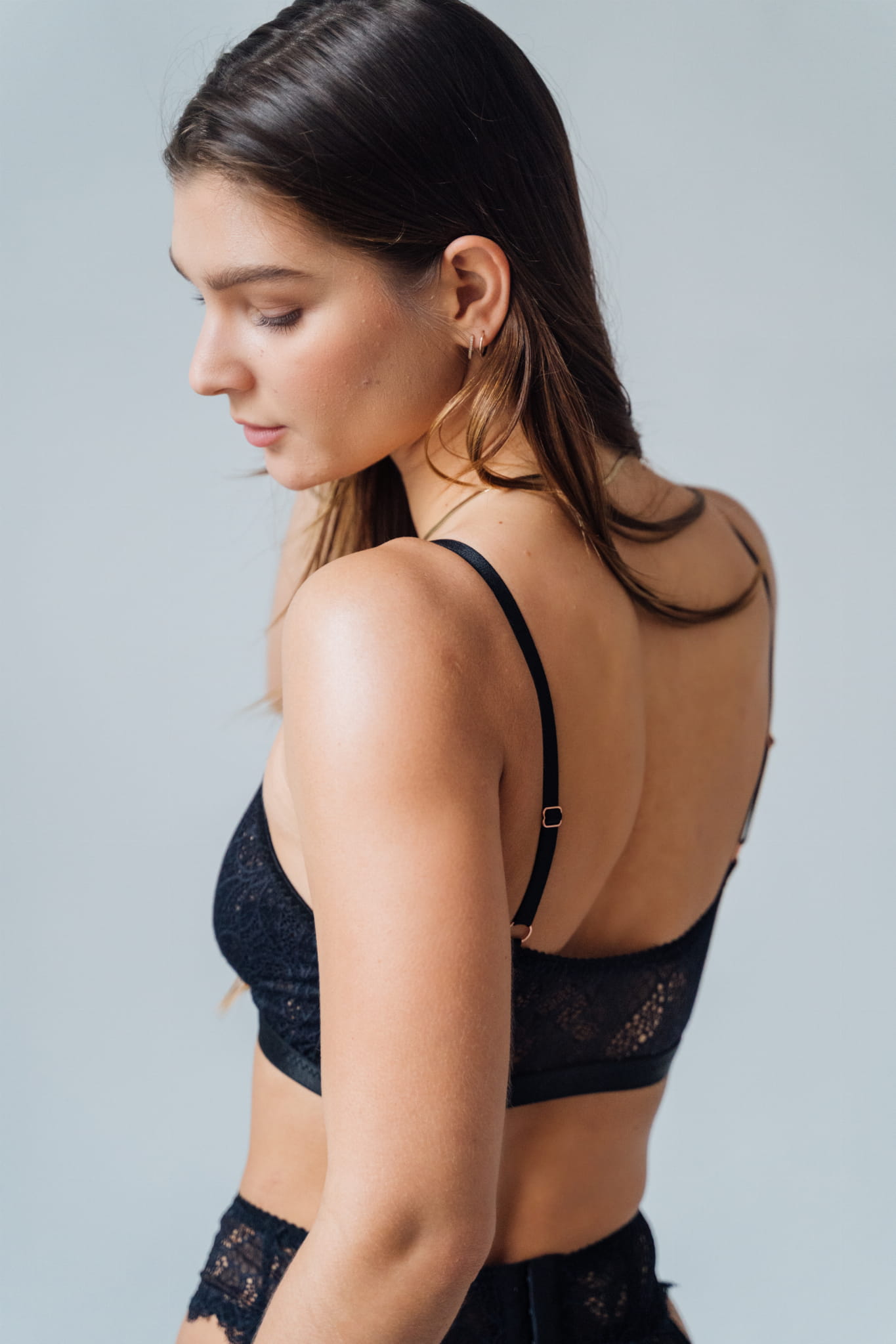 - Top wkładany przez głowę z podwójnym materiałem w miseczkach i wyjmowanym wiązaniem z powlekanej gumy kapeluszowej.